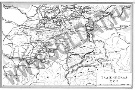 Карта Таджикской ССР из альбома сети автомобильных дорог, 1945 г.
