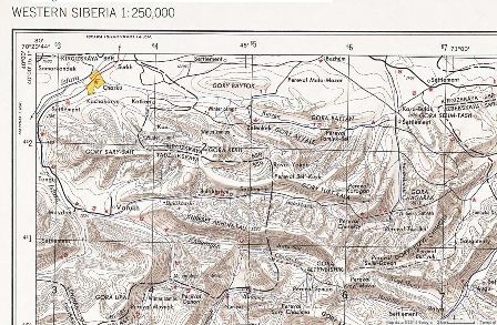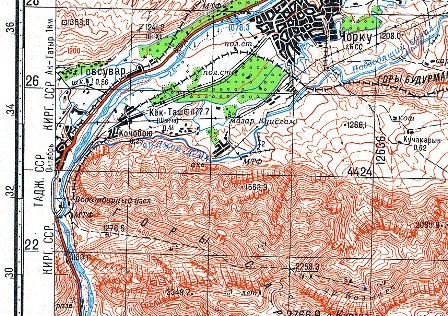 Советская военная карта, 1987 г. Водозаборный узел находится на территории Таджикской ССР.