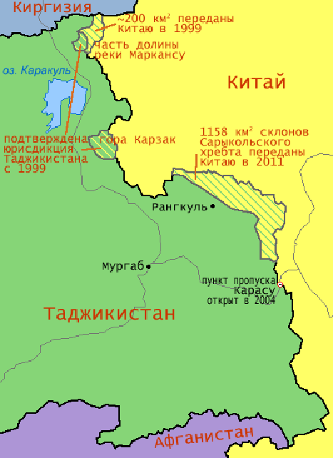 В начале 2011 года парламент Таджикистана официально передал Китаю 1,1 тысячи квадратных километров спорных территорий