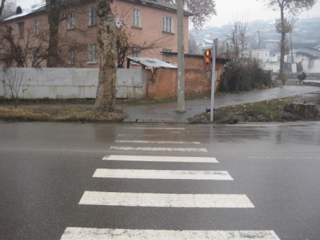 Разметка «зебра» по улице Н.Мухаммада. Кто же постарался так нанести «зебру», что пешеходы должны перепрыгивать арык или прямиком падать в него?