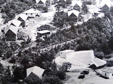 1967 год, Рамитское ущелье. На снимке: пионерский лагерь «Горная сказка». На берегу реки Кафирниган размещен большой благоустроенный трехэтажный корпус, а в глубоком зеленом ущелье, словно в сказке, стоят разноцветные мансардные домики. Архитектор А. И. Макуха, инженер А. А. Уйбо.