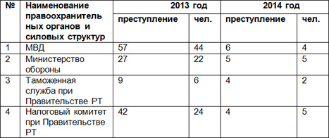 Следует отметить, что наибольшее количество коррупционных преступлений приходится на Министерство внутренних дел страны. На втором месте по количеству налоговых преступлений стоит Налоговый комитет и на третьем Министерство обороны.