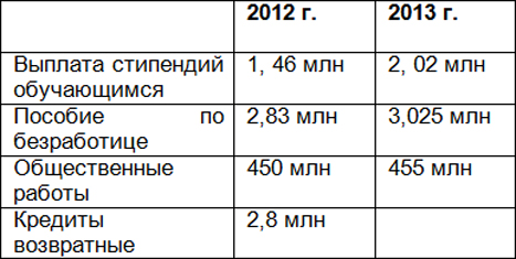 В 2012 г. получателями пособия стали 6,3 тыс. (11,5%) при 54,9 тыс. официальных безработных; в 2013г. — 7,7 тыс. (14%) при 55,3 тыс.