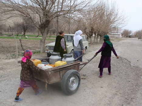 — Жизнь в кишлаке очень тяжела, – рассказывает Сафаргуль, пожилая жительница Фирузы. – Проблема номер один — отсутствие питьевой воды. Ее уже четвертый день нет. Мы обращались и к председателю джамоата Орифу Заробову, но кроме грубого обращения и мата от него ничего невозможно услышать. Обычно вода подается установленными примерно на десять домов механическими водяными насосами утром и вечером, на час-полтора, а потом пропадает еще на несколько дней. Этого времени недостаточно, чтобы набрать воду всем. Приходится воду доставлять с Чашмаджона (так жители называют