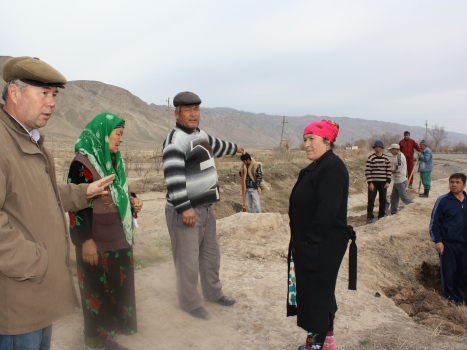 — С 1977 года я работала механизатором «Бешкентводстроя», — говорит собеседница. — Вода доставлялась на тракторах, и тогда еще ПМК-37 построил оросительный канал. Очень часто возникали споры между соседями из-за воды. Воду по этому каналу получал только первый совхоз, до второго, имени Тулагонова, она попросту не доходила. Водозабор вот уже 20 лет как не работает. При содействии USAID мы создали ассоциацию водопользователей, где от каждого десятка семейных дехканских хозяйств избран один представитель. От нашей махалли избрана я. Решение всех вопросов, от создания до финансирования, взяло на себя USAID, но вот представители местной администрации постоянно ставят препоны, грубят. Ведь мы же сами все это делаем для себя. Председатель джамоата Ориф Заробов на одном собрании даже прилюдно сказал: «Куда тебе, старой туркменке, представлять дехканское хозяйство…»