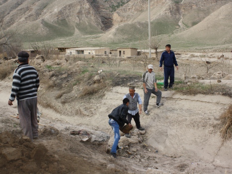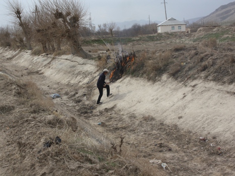 На следующий день дехканские хозяйства провели хашар по очистке канала и установке шлюзов (ворот). Приехали и специалисты USAID. Члены дехканских хозяйств очищали от ила дно канала, сжигали засохшие колючки…