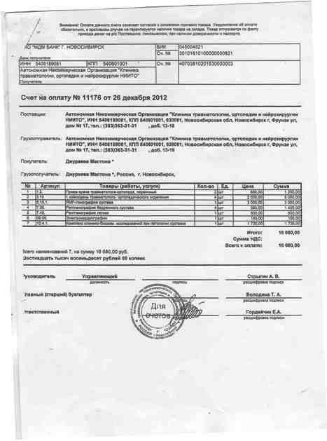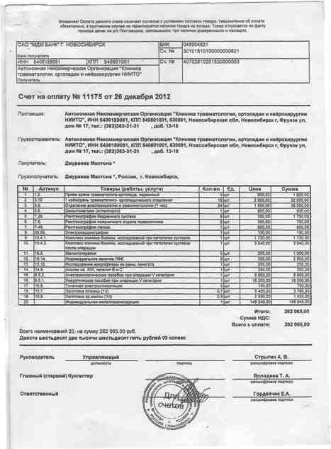 Всего на операцию и реабилитацию после нее потребуется около 300 тыс. российских рублей. Счет прилагается.