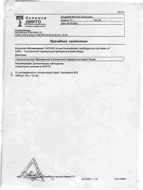 У нашей 17-летней дочери Мастоны врожденный двусторонних вывих бедер. Врачи из Новосибирска готовы поставить ее на ноги, но для ее операцию требуются очень большие средства, которые мы не в силах найти самостоятельно.