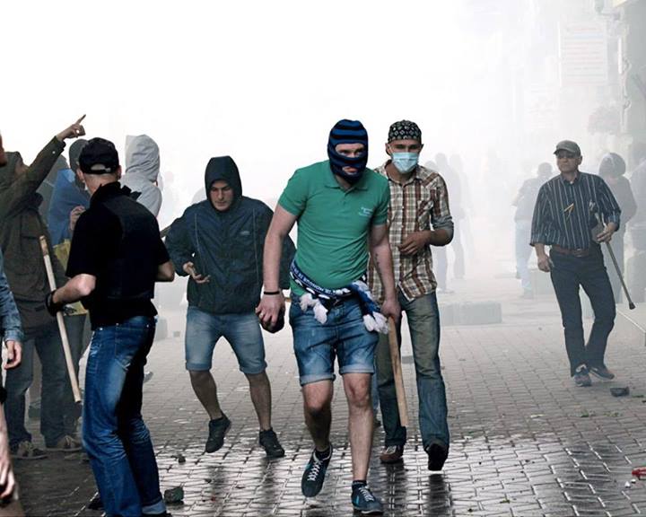 В Одессе противостояние возникло в пятницу в районе улицы Греческой между активистами Антимайдана с одной стороны и фанатами одесского и харьковского футбольных клубов, а также активистами Евромайдана — с другой.
