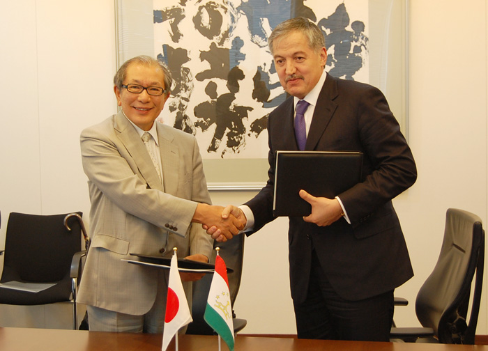Церемония подписания двух грантовых соглашений по проектам «Улучшение системы питьевой воды района Пандж Хатлонской области» и «Предоставления стипендий для развития людских ресурсов — JDS» состоялось в Токио в ходе двусторонней встречи Министра иностранных дел Республики Таджикистан Сироджидина Аслова с Вице-президентом Японского Агентства по международному сотрудничеству (JICA) Хидеаки Домичи 27 июня.