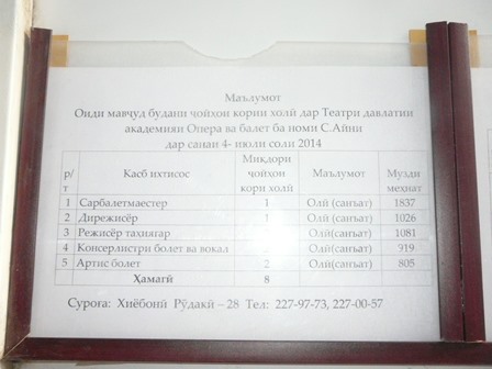 Государственный академический театр оперы и балета им. С.Айни объявляет набор на вакантные должности: