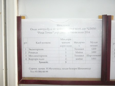 ООО «Рохи Точик» объявляет набор на вакантные должности: