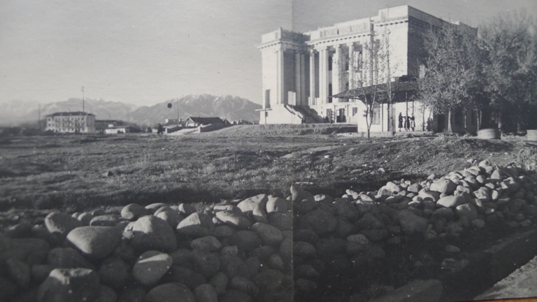 Фото 2. Сталинабад, 1945 год. На снимке: территория перед Театром оперы и балета им. Айни.  Сейчас на этом месте площадь им. 800-летия Москвы.