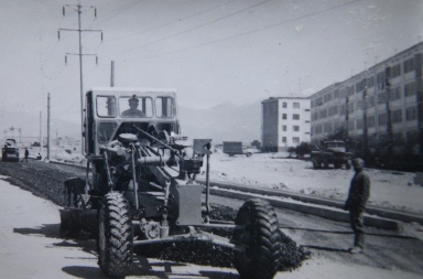 Душанбе, 1971 год. На снимке: асфальтирование дороги по улице Н. Карабаева в районе 46-го микрорайона.