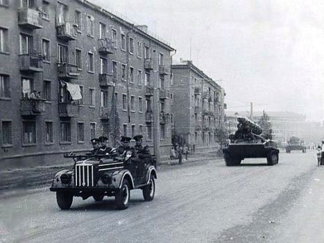 Душанбе, 1965 год. На снимке: улица Шевченко. Ракетные комплексы бригады ПВО выдвигаются на военный парад в центр города.
