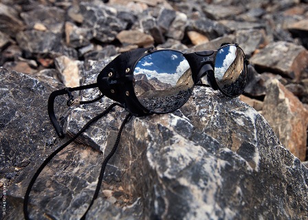 Отражение гор в альпинистских очках.