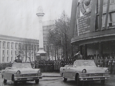 Душанбе, 70-е годы прошлого века. На снимке: военный парад в честь Великой Октябрьской Социалистической революции на площади им. Ленина (Сомони).