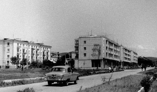 Душанбе, 1967 год, улица Чехова. На переднем плане — дом, в котором сейчас распложен Техно-торговый центр «Волна».