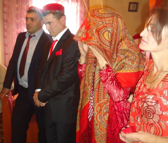 После этого новобрачный со своей свитой садится в другом конце дома, к нему выводят невесту, зажигают священную траву страхм – это для Памира то же, что для других регионов Таджикистана хазориспанд, — и начинается церемония никоха. Невеста и жених стоят перед халифой, он читает суры из Корана, а затем вручает молодоженам документ, по типу брачного договора, в котором жених и невеста официально обязуются любить и беречь друг друга. Кстати, этот документ имеет и определенную силу: у исмаилитов есть специальный религиозный институт, который при необходимости решает вопросы супругов на основании этого документа.