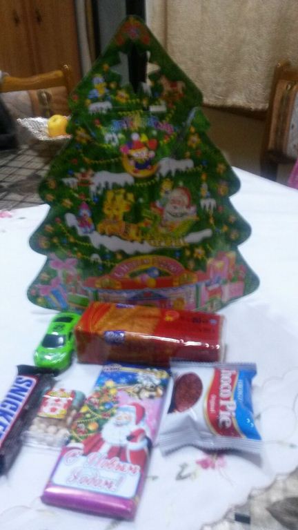 Судя по подарку, его точно дарили не ради уважения ветеранов. Новогодний подарок, который вручили сыну ветерана ВОВ Марии Ивановны Кроливец в хукумате района Шохмансур, был не просто убогим, это была насмешка над ветеранами. В красочной упаковке были дешевая рублевая машинка, один сникерс, две пачки сухариков (сын их открыл сразу, они были испорчены, прошел срок годности), один чоккопай, коробочка дешевых китайских конфеток, дешевая турецкая шоколадка и пачка таких же дешевых печенья.