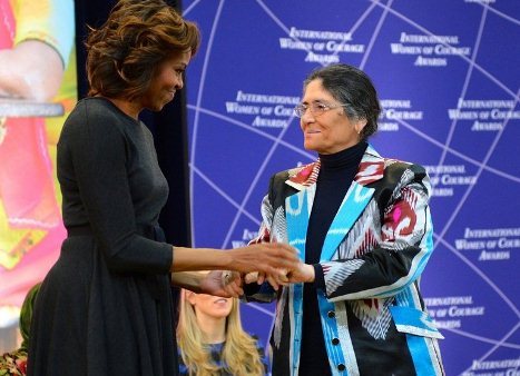 — правозащитник из Таджикистана стала лауреатом премии за отвагу (International Women of Courage), которую ей вручили на торжественной церемонии первая леди США Мишель Обама и заместитель госсекретаря страны Хитер Хиггинботтом в Вашингтоне.