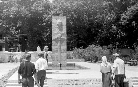 1972 год. Памятник героям гражданской войны, установленный в парке культуры и отдыха им. В.И.Ленина. Сейчас на месте старого парка построен новый парк имени Рудаки.