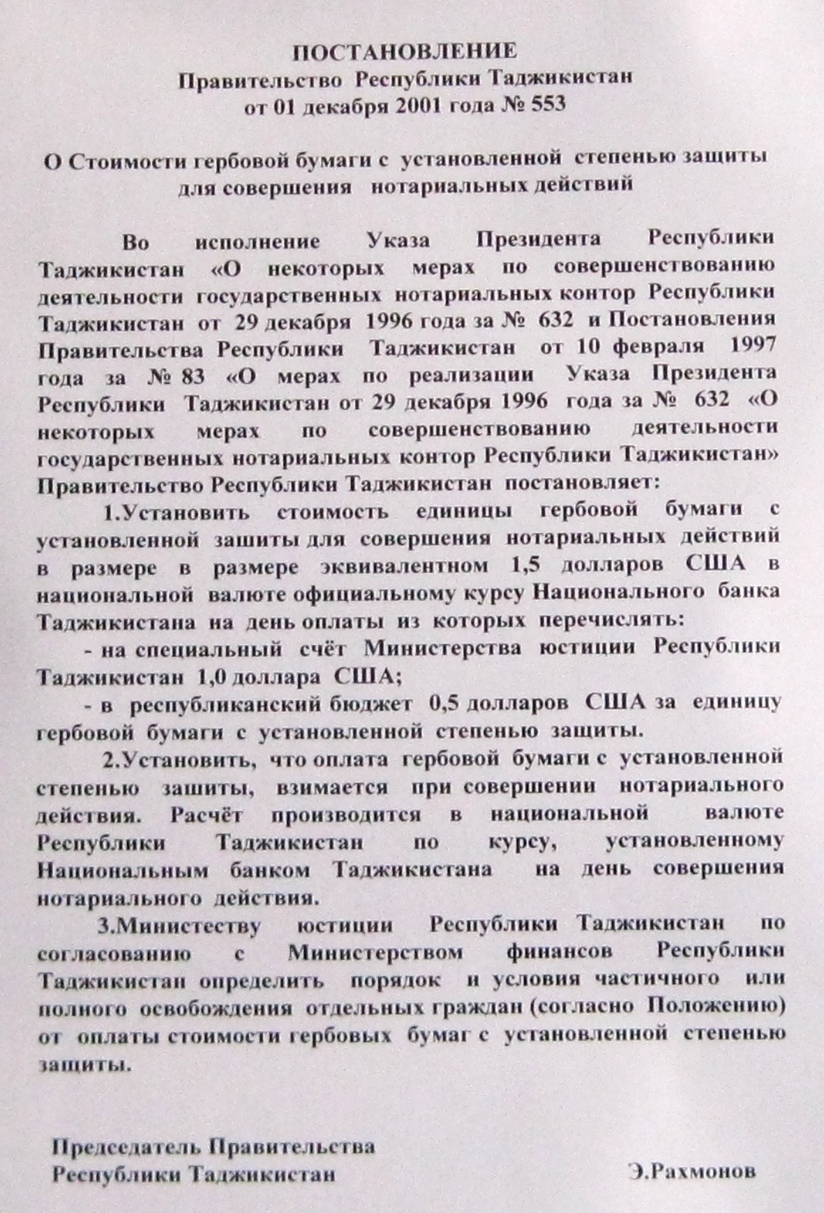 Также под заголовком «стоимость гербовой бумаги установленной степенью защиты» оказались лишь реквизиты и текст постановления правительства, без конкретной цифры.