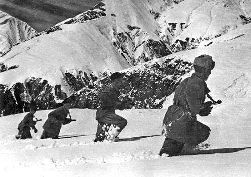 (Бойцы 63 кавалерийской дивизии в горах Кавказа)