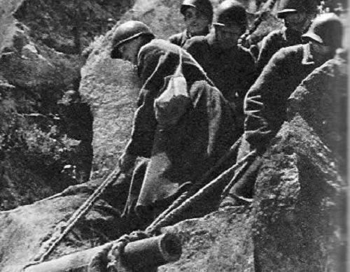 Подъем пушек в горы артиллеристами 65 конно — артиллерийского дивизиона 63 К. Д.)
