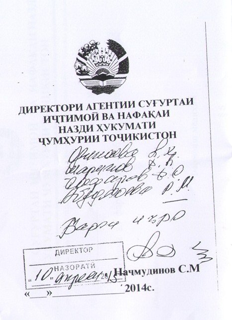 Уважаемый Асадулло Рахмон! Задается Вам вопрос:Сафарали Наджмуддинов-Директор Агентсво по соцстрахованию и пенсии при Правительстве РТ сам является пенсионером, то есть он получает пенсия уже с ноября 2014 года.Или по другому ипольнител Вашего Распоряжения сам является пенсионером.Как Вы думаете при таком обстоятельстве сможет он выпольнит вашего указание или может он начнет с себя?.