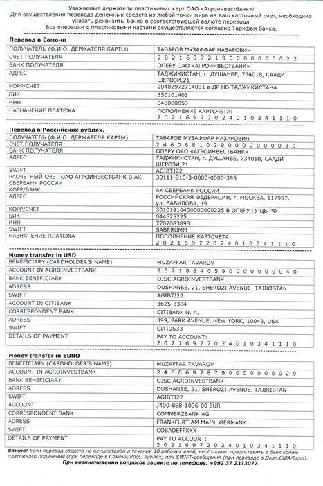 Телефон для контактов +992 919181400