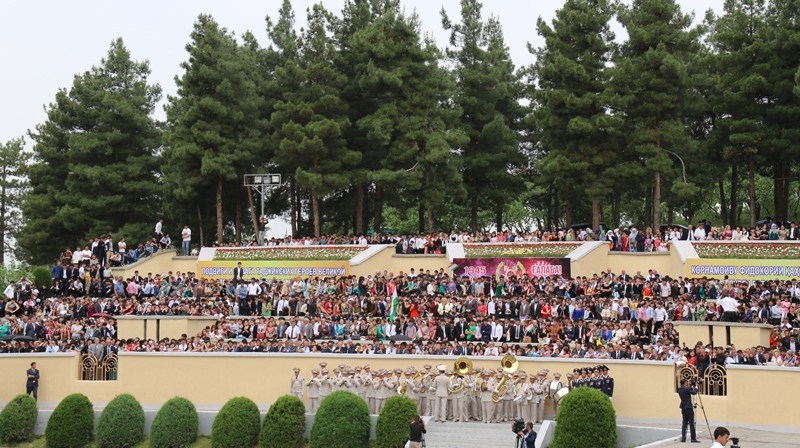 Президент страны, выступая на церемонии открытия парада, поздравил ветеранов с Великой Победой и подчеркнул: «Мы сегодня и впредь с гордостью будем напоминать, что для обеспечения исторической победы, наряду со всеми народами, боровшихся против фашистского ига, достойный вклад внесли и славные сыны Таджикистана. Еще с первых дней войны Таджикистан мобилизовал все свои ресурсы, возможности и доблестных сынов на поле битвы».