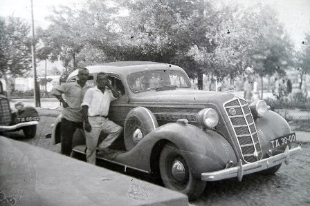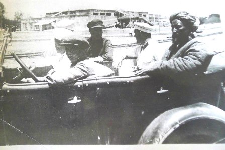 Фото 1. Июнь 1931 года. На снимке: арестованный Ибрагим-бек (на заднем сиденье) в машине,  следующей в аэродром  перед отправкой в Ташкент.  Вдали видно здание железнодорожного депо, сохранившееся до наших дней.