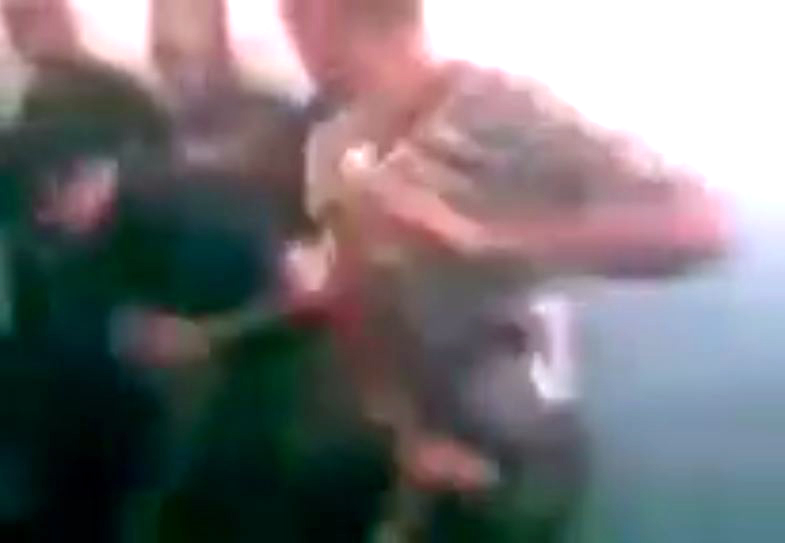 На видео продемонстрировано, как то ли старослужащий то ли кто-то из младшего офицерского состава методично, особым садистским способом, истязает пятерых солдат в течение восьми минут.