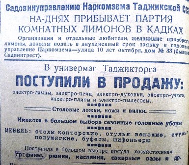 1936 год. Реклама «Таджикторга».