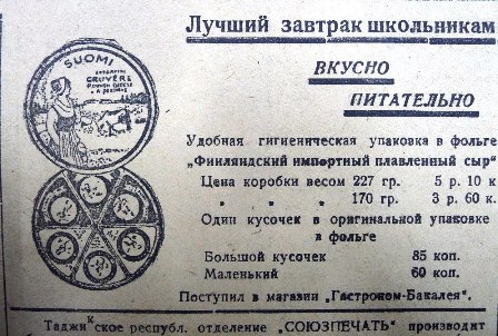1936 год. Реклама финского плавленого сыра «Суоми». (В наши дни он известен под названием  «Виола».)