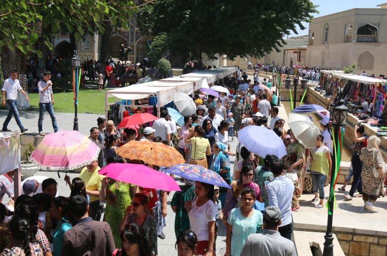 на таджикско-узбекской границе прошли без проблем. После восьмичасовой поездки на автобусе принимающей стороны, мы приехали в Бухару, который с первых минут очаровал нас своей красотой. В городе витала праздничная атмосфера.