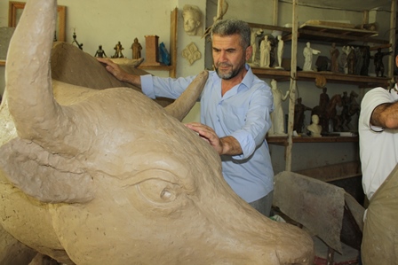 Большое место в здании отведено мастерам-скульпторам. А иначе никак. Ведь даже средний макет некоторых памятников может достигать пары метров в высоту и нескольких метров в длину. Сейчас здесь красуется копия известного «Шанхайского быка», над которой «колдует» мастер Джумахон Умаров. На полочках – макеты бюстов ученых, поэтов, атлетов, государственных деятелей.