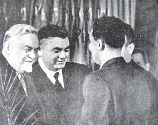 20 января 1957 года в Сталинабаде, Председатель Совета Министров СССР Николай Булганин вручил орден Ленина Таджикской ССР за высокие достижения и рекорды в сборе высококачественных тонковолокнистых сортов хлопка и внедрения абсолютно новых способов возделывания хлопчатника. На снимке — первый секретарь ЦК КП Таджикистана Т. Ульджабаев и председатель Совмина Таджикской ССР Н. Додхудоев принимают заслуженную награду.
