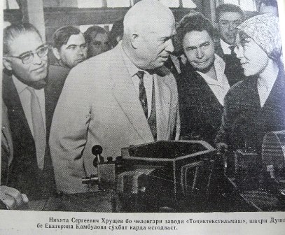 1962 год. Никита Хрущев посещает душанбинский завод «Текстильмаш».