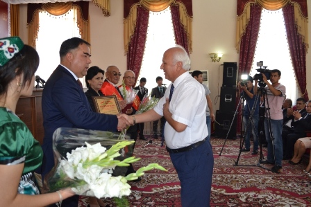 Также 25 ветеранам труда от имени председателя Согдийской области были вручены денежные премии по 500 сомони и 7 человек получили грамоты и праздничные подарки главы области.