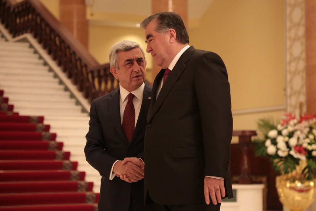 Пресс-службы президента Таджикистана напоминает, что для участия в сессии ОДКБ на высшем уровне в Таджикистан прибыли главы всех государств-членов этой организации Армении — Серж Саргсян, Беларуси — Александр Лукашенко, Российской Федерации — Владимир Путин, Казахстана — Нурсултан Назарбаев, Кыргызстана — Алмазбек Атамбаев.