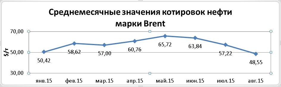 Мировые нефтяные котировки падают и поднимаются практически ежедневно. Цена нефти марки Brent на закрытие торговой сессии 31 августа составила $54 за баррель, что на 30% выше котировок недельной давности. Однако уже через неделю котировки опять спустились до уровня $48. Нефть, как зеркало всех макроэкономических процессов, как никогда волатильна. Это видно на графике изменения цен на нефть с начала года.