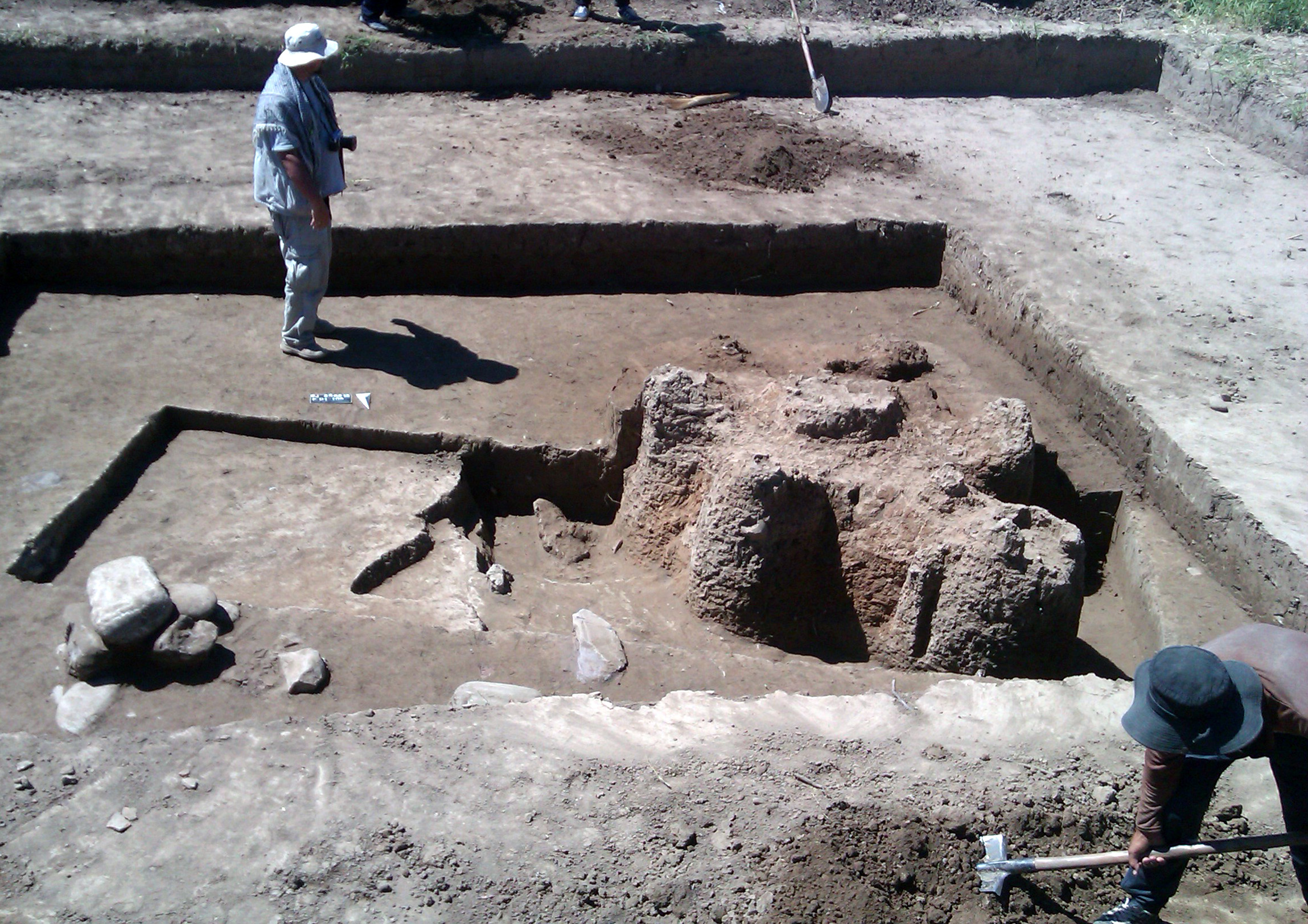 — Там в  рамках нашего проекта на трех участках холма были заложены раскопы. В первом раскопе на небольшом плато в восточной части холма была обнаружена хорошо сохранившаяся печь для обжига керамики. Непосредственно под слоем гумуса были зафиксированы четко проявившиеся контуры четырех ям. В первой яме были найдены многочисленные обломки глиняной посуды. Вся найденная там керамика по технике изготовления относится к лепной.