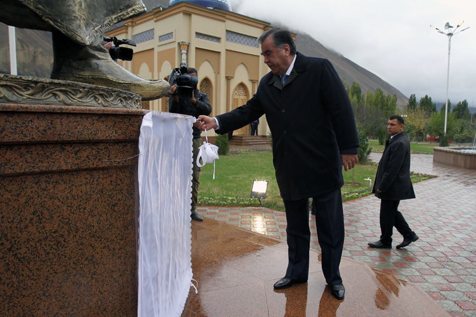 Глава государства начал свою рабочую поездку в Согдийскую область с посещения Айнинского района. Здесь глава государства в торжественной обстановке, перерезав символическую ленту и сняв покрывало с памятника Накибхону Тугралу, открыл Историко-культурный комплекс этого известного таджикского поэта, построенного в честь 150-летия поэта.