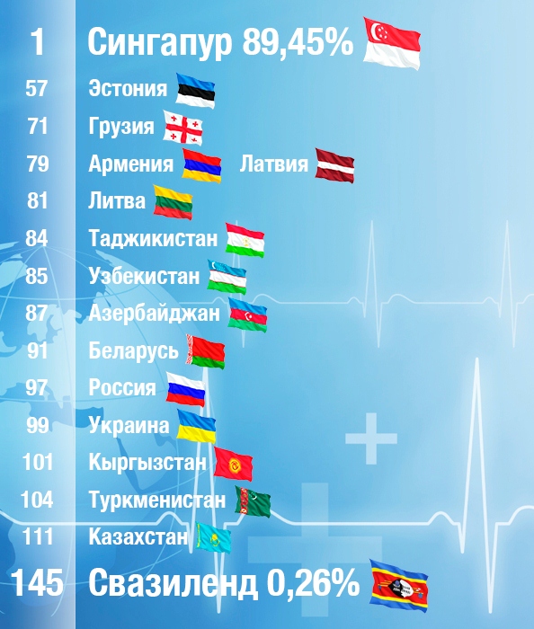 На первом месте всемирного рейтинга здоровья оказался Сингапур, а на последнем — Свазиленд.