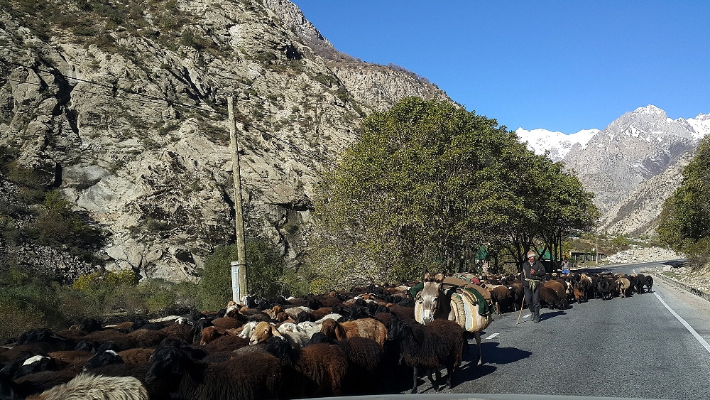 «Мы вообще возим сюда продукты из Турсунзаде, — говорит он. — Только денег у жителей кишлаков нет, приходится работать по бартеру: мы им — макароны, крупы, муку, масло, а они нам – мясо».