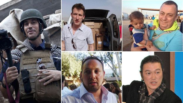 Жертвы ИГ: Джеймс Фоли, Абдул-Рахман (Питер) Кассиг, Алан Хеннинг, Кендзи Гото, Стивен Сотлофф