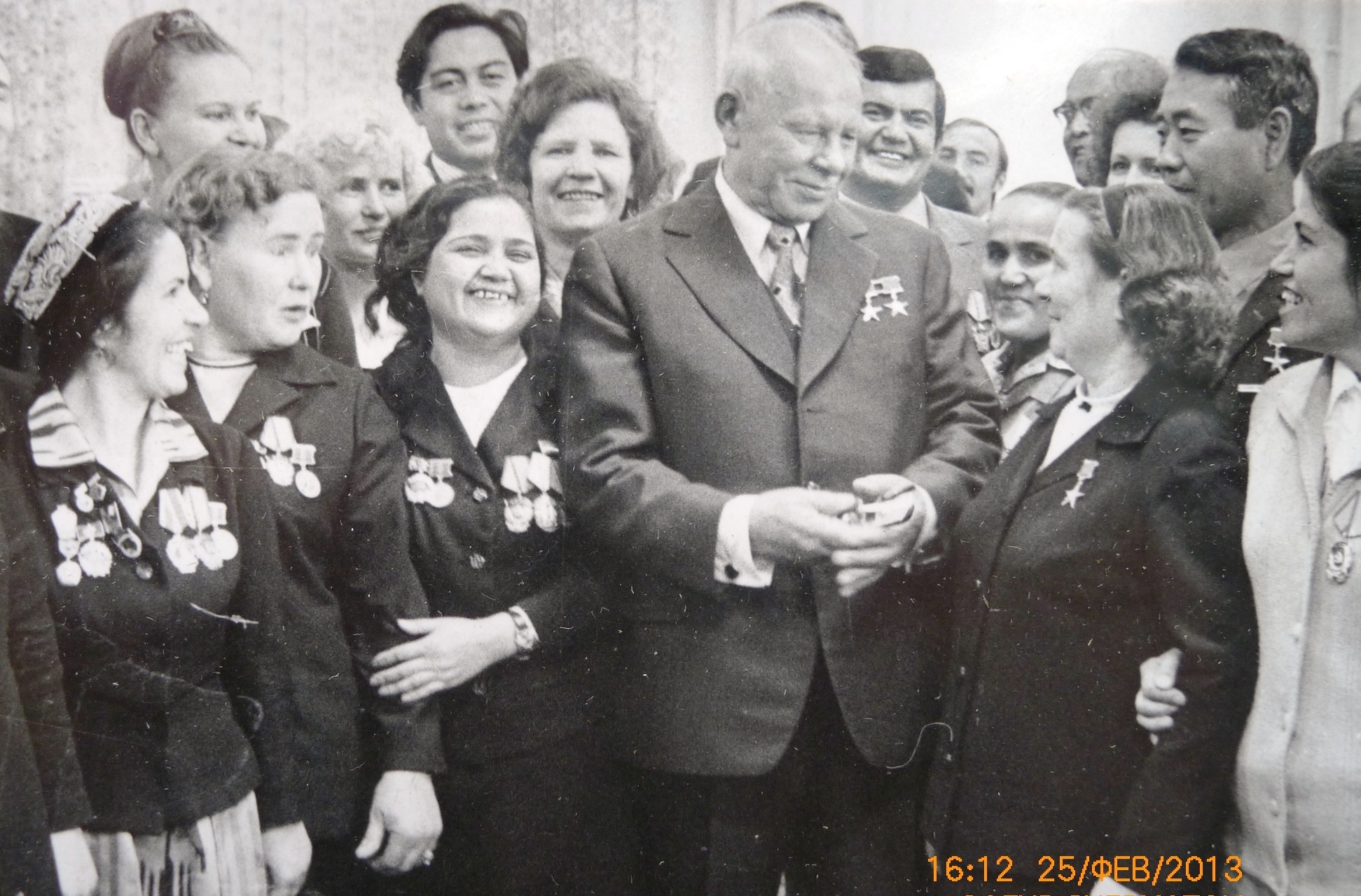 1974 год. Председатель Президиума Верховного Совета СССР Николай Подгорный в гостях у ткачих Душанбинского текстилькомбината.