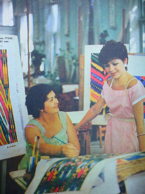 На снимке — дизайнеры Душанбинского хлопчатобумажного объединения за разработкой новых эскизов для производства новых тканей.